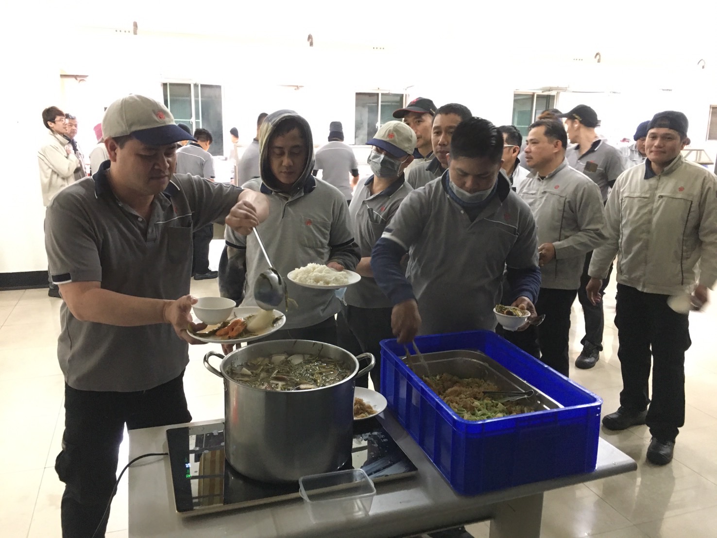 化新敲碗已久的菲律賓美食終於進駐員工餐廳了!一開始印象中的菲律賓菜色,來自於菲律賓同仁的手藝,雖宿舍中臥虎藏龍,有烤串高手、煮湯高手、庖丁解牛高手,但有時不免還是聞到很重的魚露和焦香味(誤),心想,菲律賓的美食究竟有何美妙之處?然而,吃著台菜的菲律賓員工,每每說到自己家鄉的美食總是讚不絕口,讓台灣人更加好奇。在長官的支持下,化新自2025年3月起,引進中壢一家菲籍同仁推薦的道地餐廳-Ann’s kitchen,老闆娘為菲菜廚藝高手,於每週三提供午、晚餐加菜,菜單為LECHON KARE KARE SAUTE CHINESE CHARD(烤乳豬佐花生醬燉菜)、PORK ADOBO(燉豬肉)、NILAGANG BAKA(菲式清燉牛肉湯)等在地知名菜色,菲籍同仁眼睛為之一亮,很開心也很感動能吃到家鄉的愛菜。而身為台灣人的我們,透過人資單位張貼每週菜單中文介紹,嘗鮮、大開眼界,同時也具體了解菜色的由來。菲律賓國家因歷史有著豐富且多元的文化,除了各國文化包容,當地菜色口味上,更融入西班牙、美式、中式與菲式口味,呈現多層次口感。食物是連結文化、促進理解與包容的重要橋樑。透過探索多元的飲食文化,我們可以實踐多元共融的價值觀,從餐桌開始,建立更包容的社會。